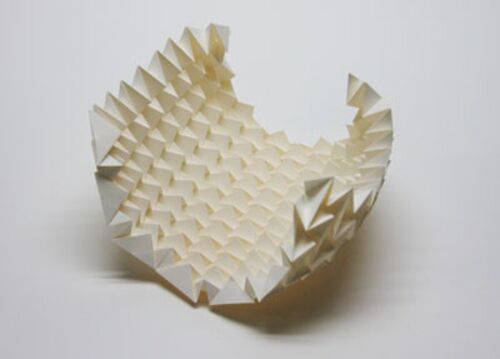 久しぶりに折り紙しました。今回は原点回帰ということで、風船の基本形の敷き詰めパターンとして、よく知られた構造を折ってみました。内側から見たところ。 外側から見たところ。 フニャフニャしていて、ひっぱったり押したりすると形が変わって楽しいです…