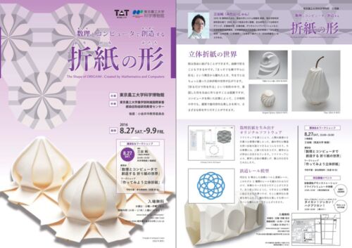 東京農工大学の科学博物館で、折り紙の作品展「数理とコンピュータで創造する折紙の形」を開催させていただけることになりました。 http://web.tuat.ac.jp/~museum/information/news/20160827-ex.html http://mitani.cs.tsukuba.ac.jp/dl/2016/origami_exhib…