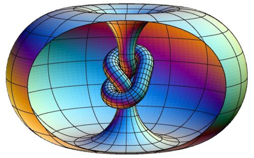 Twitter で「結びトーラス」の作り方を知りたい、というツイートをみかけて、まっ先に、川崎徹郎先生の下の図を思い出しました。 http://pc1.math.gakushuin.ac.jp/~kawasaki/HTMLSurfaces/htmlSurfaces30.html 以前に日本数学会のマークとしても使われてい…